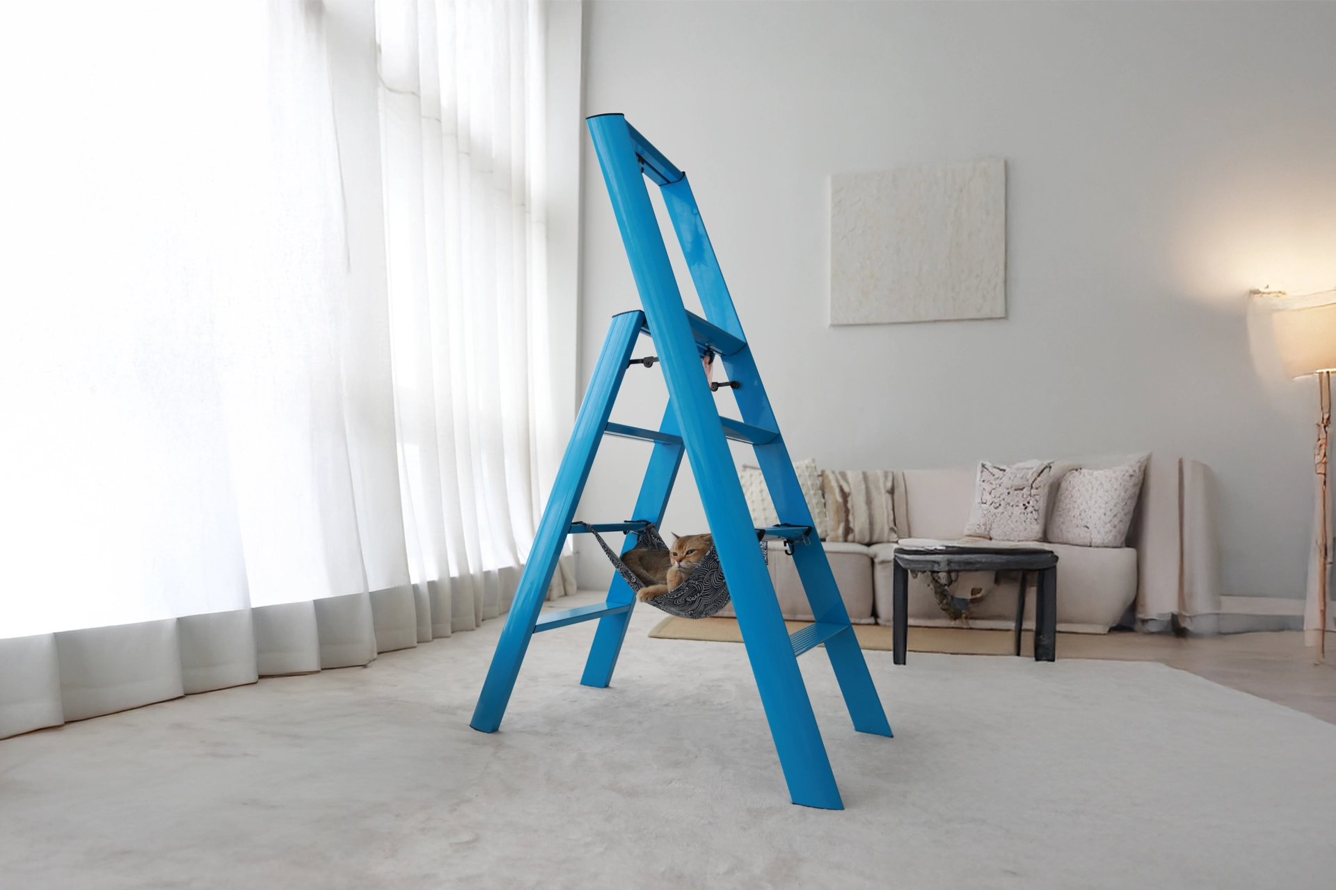 For years, step stools and ladders have been made the same way: plain, old-fashioned, with dull aluminium mill finish and exposed rivets. They looked purely mechanical, and people would use them once, then hide them away in storerooms.